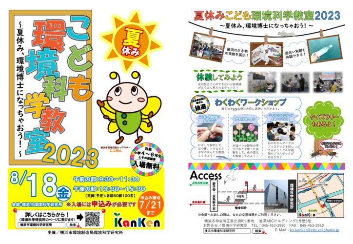 夏休みこども環境科学教室2023ちらし(PDF:1,688KB)