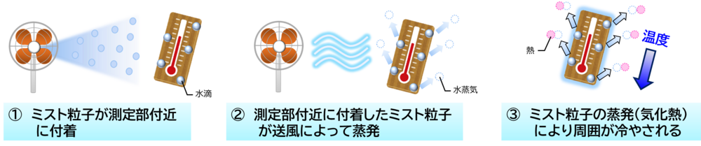 ミスト付き送風ファンによって温度が下がるメカニズム