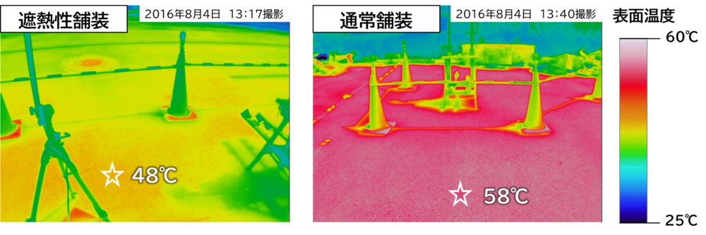 地表面の遮熱化の一例として、「遮熱性舗装」があります。