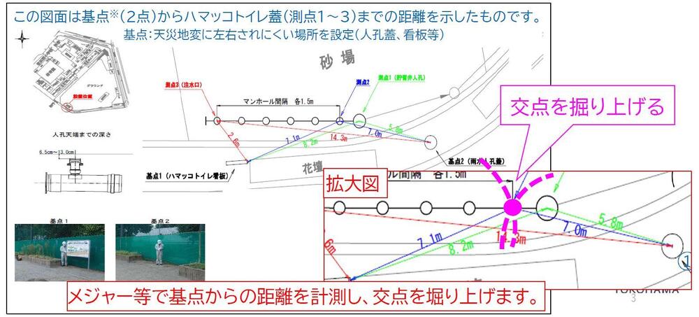 オフセット図面の使い方(ハマッコトイレがグランドに埋設されている拠点のみ)