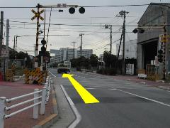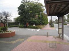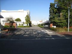 踏切を通り、約1,200メートル先の左側に正門があります。