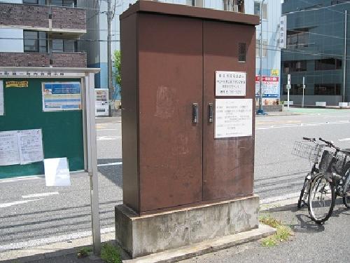芦名橋公園敷地内に盤があります。放流を操作するためのゲートです。