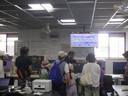 施設の見学では、下水が水再生センターに入ってくるところから、順を追ってきれいになっていく様子を職員が引率・説明し、施設を回りながら見ていただきます。また、24時間体制で稼働する水再生センターの心臓部である、中央操作室の見学もできます。