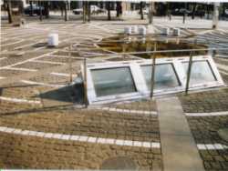 - 埋設状況がわかるように、地上からのぞき込めるようにガラスのおおいがしてあります。