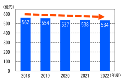 2022年度の下水道使用料収入は534億円(税抜)でした。