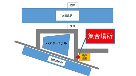 (3)集合時間 13:00 京急鶴見駅 横浜銀行鶴見支店前 ※鶴見駅から無料送迎バスを運行