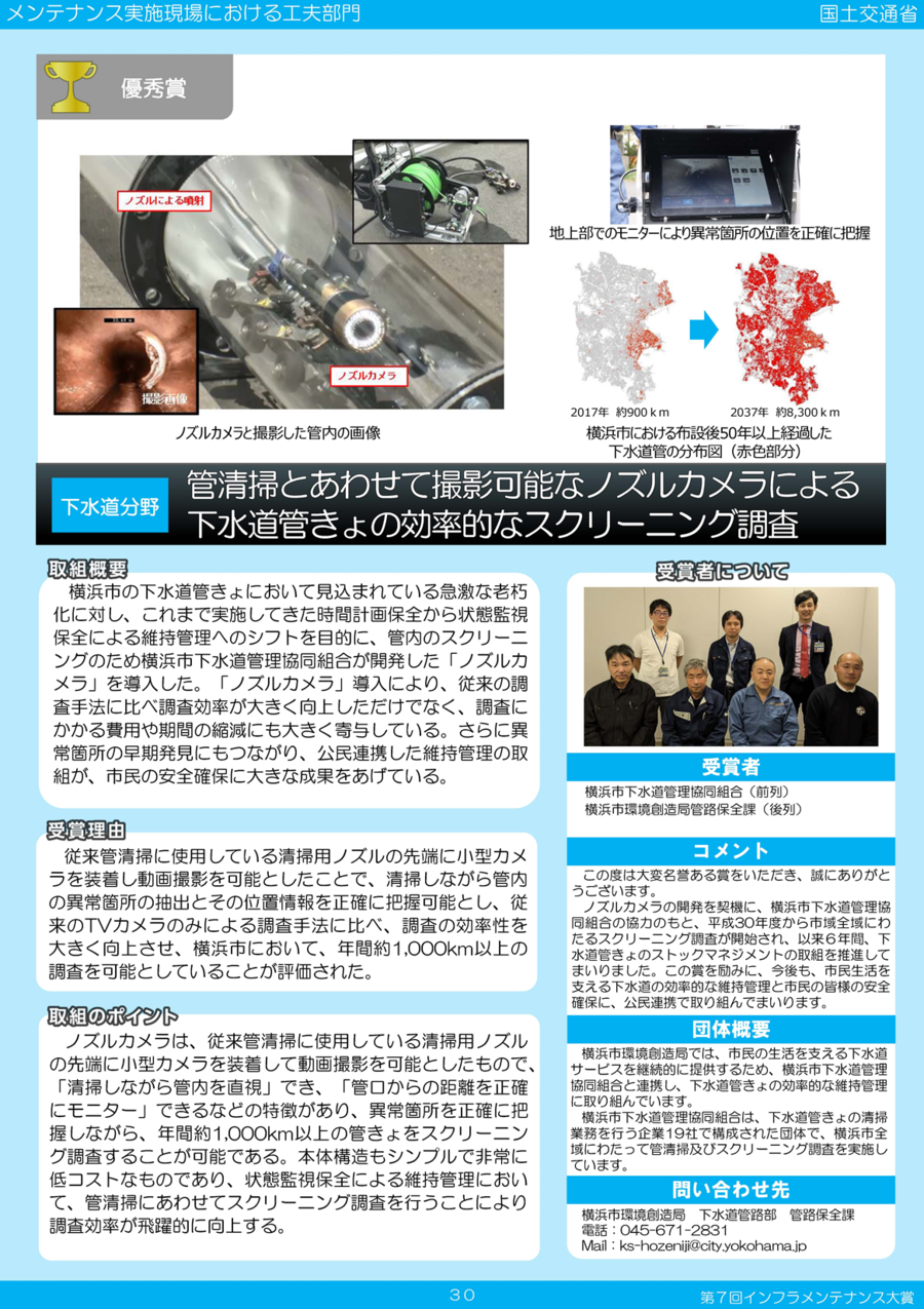 第7回インフラメンテナンス大賞において、横浜市環境創造局の取組が優秀賞を受賞しました!