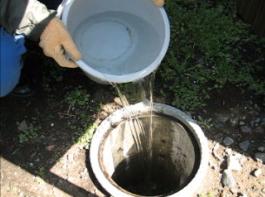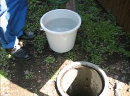 - 雨水浸透ますに水を流し込みます。