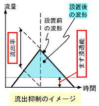 ただし、弱い雨で試算した場合[3(2)ア参照]です。 - 激しい雨に対して、5~10%程度の削減効果があり、浸水被害が軽減されます。