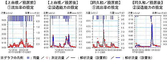 (各地区の土質により浸透能力が異なるため) → 3(1)へ - 実績降雨を用いて雨水の流出量を、浸透施設が無い場合(設置前)と、ある場合(設置後)について算定