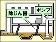 ごみは除じん機でかき集め、水はポンプでくみ上げて最初沈殿池へ送ります。