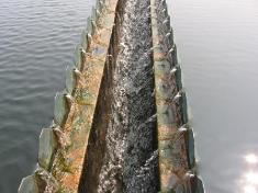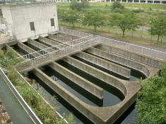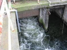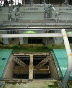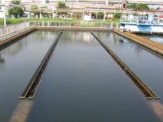 池の表面の越流ぜきから流れ出たのが処理水です。