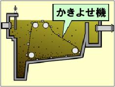 油分など表面に浮いたごみも除去装置で取り除きます。