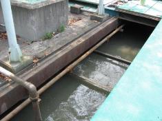 沈砂池では水をゆっくりと流し、大きなごみを取り除きます。