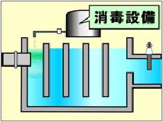 接触タンクでは、処理水を次亜塩素酸ナトリウムで消毒します。その後、川や海に放流します。