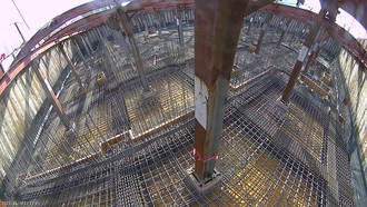 2 配筋工:掘削が完了後、様々な径(直径13㎜~32㎜)の鉄筋を所定の位置に設置します。