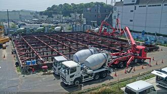 4 コンクリート打設工:型枠にコンクリートを流し込みます。