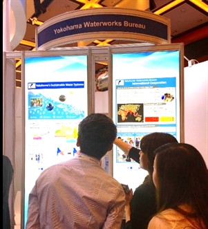 ブース出展およびセミナー発表を、横浜水ビジネス協議会会員企業2社(日本原料株式会社、ムラタ計測器サービス株式会社)と合同で実施しました。展示ブースでは、動画放映、製品展示、パンフレットの配布などによって、協議会と会員企業のPRを行いました。また、セミナーでは、本市の国際技術協力と、会員企業の技術について紹介しました。