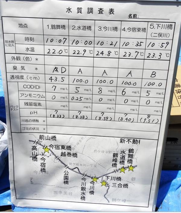水質調査の結果は以下のとおりでした。たくさんの生き物が棲んでいる一方で、意外と水質は