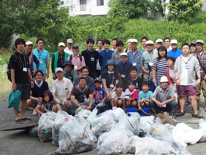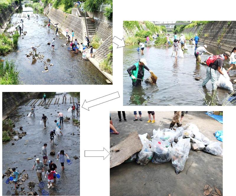 お昼休みを挟み、午後からはクリーンアップ作戦を実施!午前中に生物調査を行った箇所で、帷子川をきれいにする