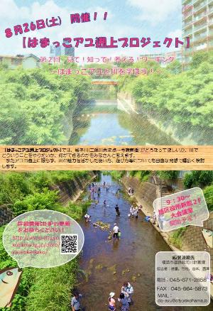| 申込み先 | 横浜市道路局河川部河川企画課 TEL:045-671-2858 e-mail:do-ayu@city.yokohama.jp ←メールによる参加申込み・ご意見はこちら!!! |