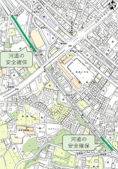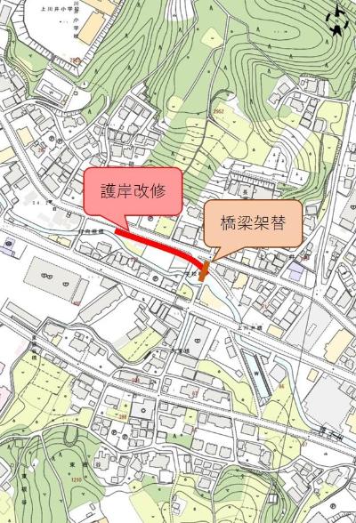 | 関連情報 | 工事中区間:学校橋周辺(橋梁架替え・護岸改修)、施工済区間:下川井橋周辺(河道の安全確保) |