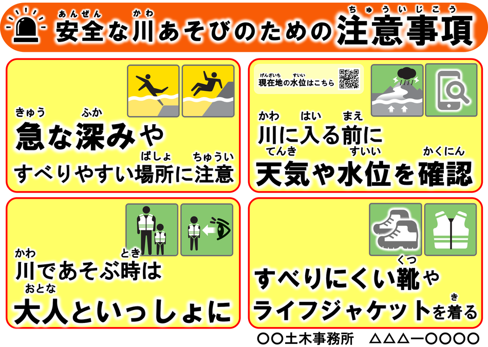 看板イメージ(川に入る時に気を付ける4つの約束)