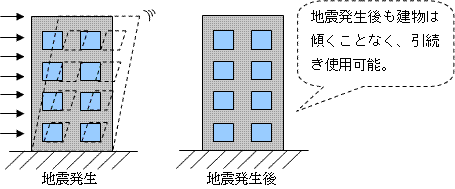 建物の耐用年限中に数度は遭遇する程度の中規模地震に対して、柱・梁等の構造体にほとんど被害が生じないことを目標とする設計です。