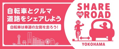 自転車利用者のルール遵守意識の向上及び自転車が車道の左側を通行しやすい環境の創出を図るため、自転車とクルマが互いに思いやりを持って車道を共有する意識(SHARE THE ROAD)を自転車、クルマの運転者双方に啓発する運動です。