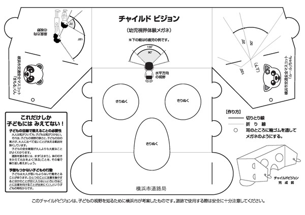 幼児の視野の狭さを体験することのできる組立て式のメガネです。