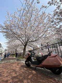 大岡川は、四季を通じて川沿いを歩きたくなる場所の一つです。桜の季節もまた格別な時期です、が、少し桜が散り始めの頃がバイク乗りには堪らないものです。ボディカラーとメットカラーに路面も重なってバランスの良い構図になっています。