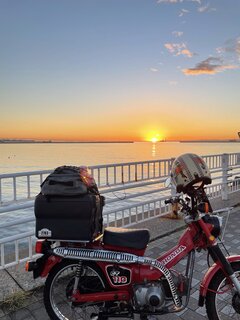 HONDAのCT110は、カブやCT50からの歴史があります。すっかり様変わりをして今では若い人たちにツーリングやキャンピング用にもよく使われている様です。ふっと感動的な光景を目にして、バイクを止め愛車と一緒に夕日を眺めたくなるのはバイク乗りの特権でしょう。相棒との素晴らしいひとときですね。