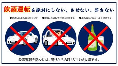 飲酒運転は極めて悪質な犯罪です。一人ひとりが「飲酒運転を絶対にしない、させない、許さない」という強い意志を持ち、飲酒運転を根絶しましょう。