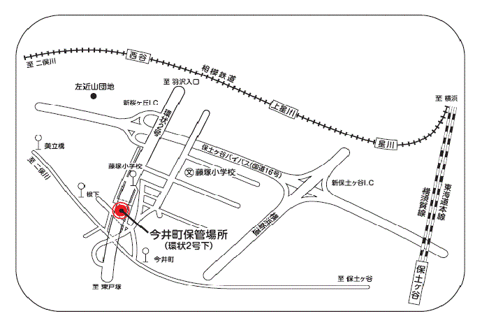約150m進んだ環状2号線の高架下が今井町保管場所です。