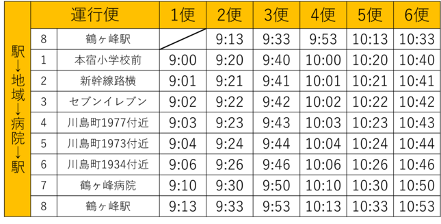 運行ルート:本宿東部地区及び川島町西地区~鶴ヶ峰駅