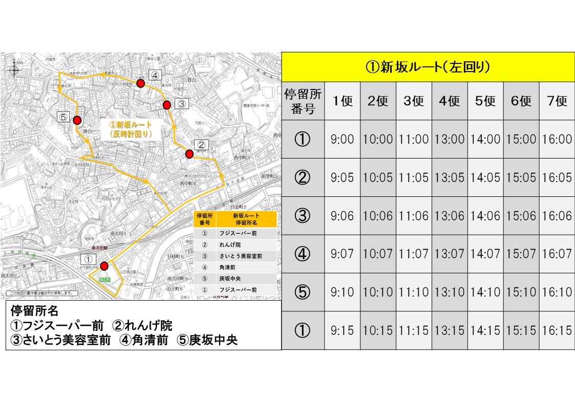 3ルート運行(①新坂ルート②清水坂東ルート③清水坂西ルート)