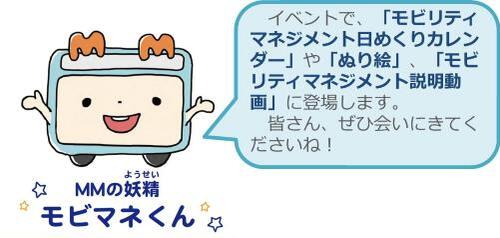 モビマネくんは、モビリティマネジメント啓発イベント 「みんなでMM!~考えようモビリティマネジメント~」で初めて皆さんの前に登場します。