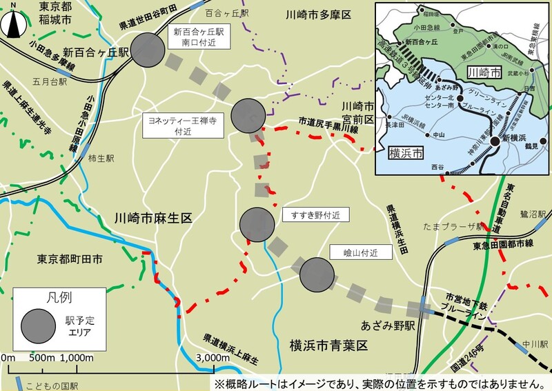 | ルート・駅位置 | 新駅4駅(既設あざみ野駅を除く) |