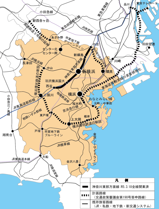 地域の成長に応じた鉄道ネットワークの充実に資するプロジェクトとして、高速鉄道3号線の延伸、横浜環状鉄道の新設、東海道貨物支線の貨客併用化が位置づけられています。