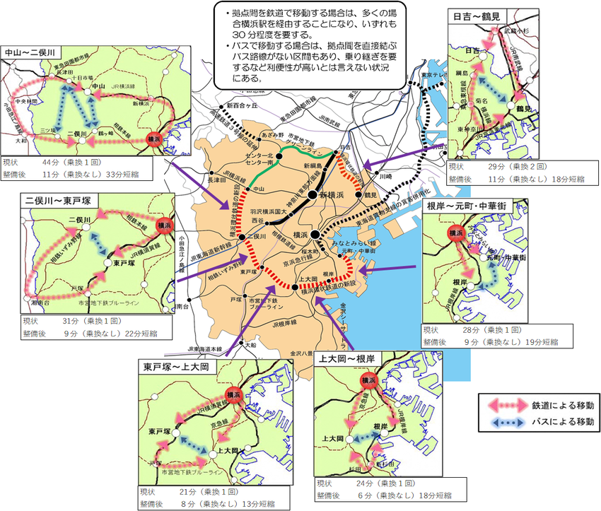横浜環状鉄道の新設(日吉~鶴見、中山~二俣川~東戸塚~上大岡~根岸~元町・中華街)