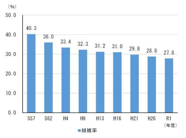 この度、令和元年度の緑被率の調査結果がまとまりましたので報告します。