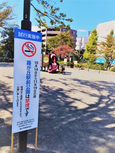 横浜市では、「横浜市中期計画2022~2025」において「子育てしたいまち 次世代を共に育むまち ヨコハマ」を基本戦略として推進しており、多くの子どもたちが利用する公園では、安全に利用できる環境を確保するため、率先して受動喫煙対策の取組を進めたいと考えています。横浜市の公園ではこれまでも、動物園、プールでは禁煙とし、さらに遊具の近くなど子どもがいる場所で喫煙しないよう、喫煙する方に向け、ポスターを掲示するなど、配慮を呼びかけています。