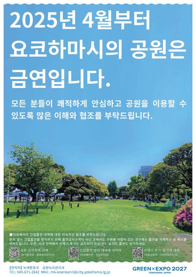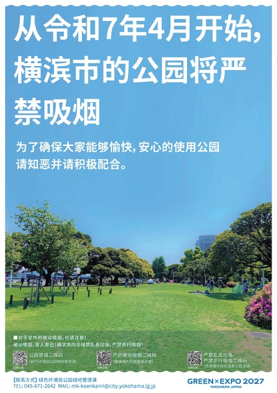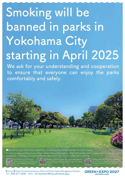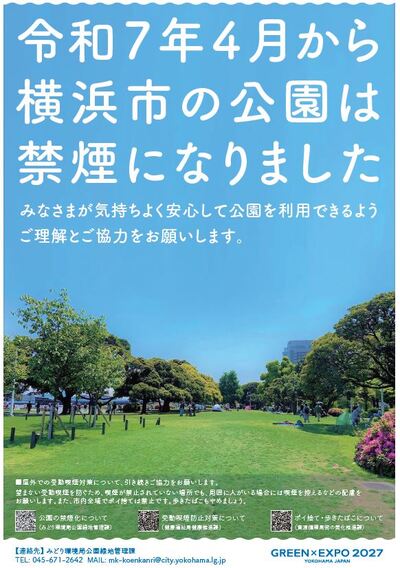 横浜市の公園は令和7年4月から禁煙になりました。