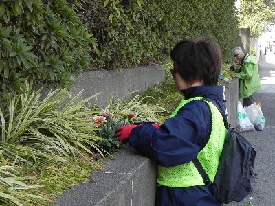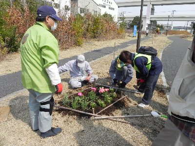 新子安橋プランターの花苗植え付け
