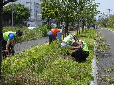 沿道の緑地帯のお手入れ