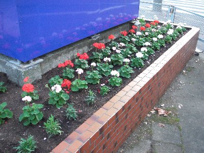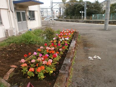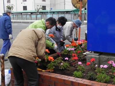 弁天橋駅前の協議会企業用地にある花壇の植え替え