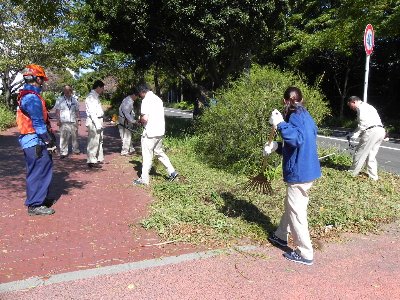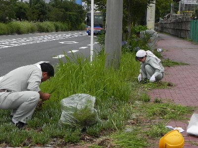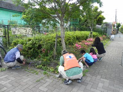 子どもたちも一緒に、企業の公開緑地のお手入れ