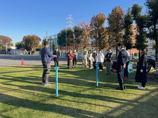 屋外での芝生の説明(令和7年度の講習会の様子)