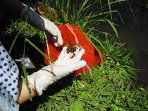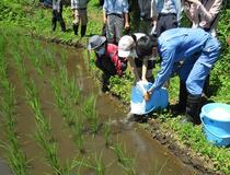 生息地に近い市立新治小学校のビオトープ池への幼生の放流