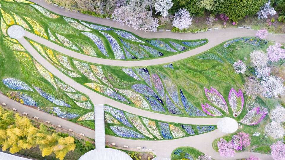 春の里山ガーデンフェスタ大花壇全景(2025年4月8日撮影)
